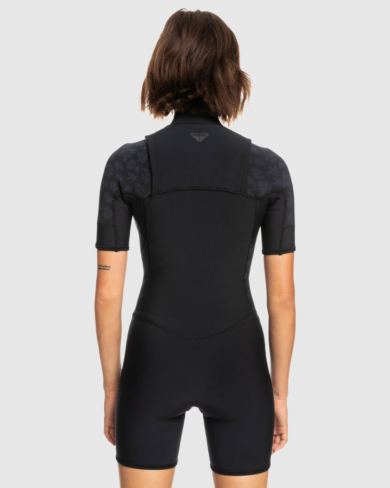 Short Sleeve Chest Zip Springsuit for Women. Features include: Fabric: Eco StretchFlight fabric, Seams: Q-Lock stitched seams, Technology: Water based glue used for lamination, Recycled polyester and nylon lining, Suitable for suggested water temperatures of 18 - 21°C / 64 - 70° F, Chest zip entry with PK#8 plastic zip, Product appearance may differ slightly depending on print placement, Glideskin neck seal, Key loop.