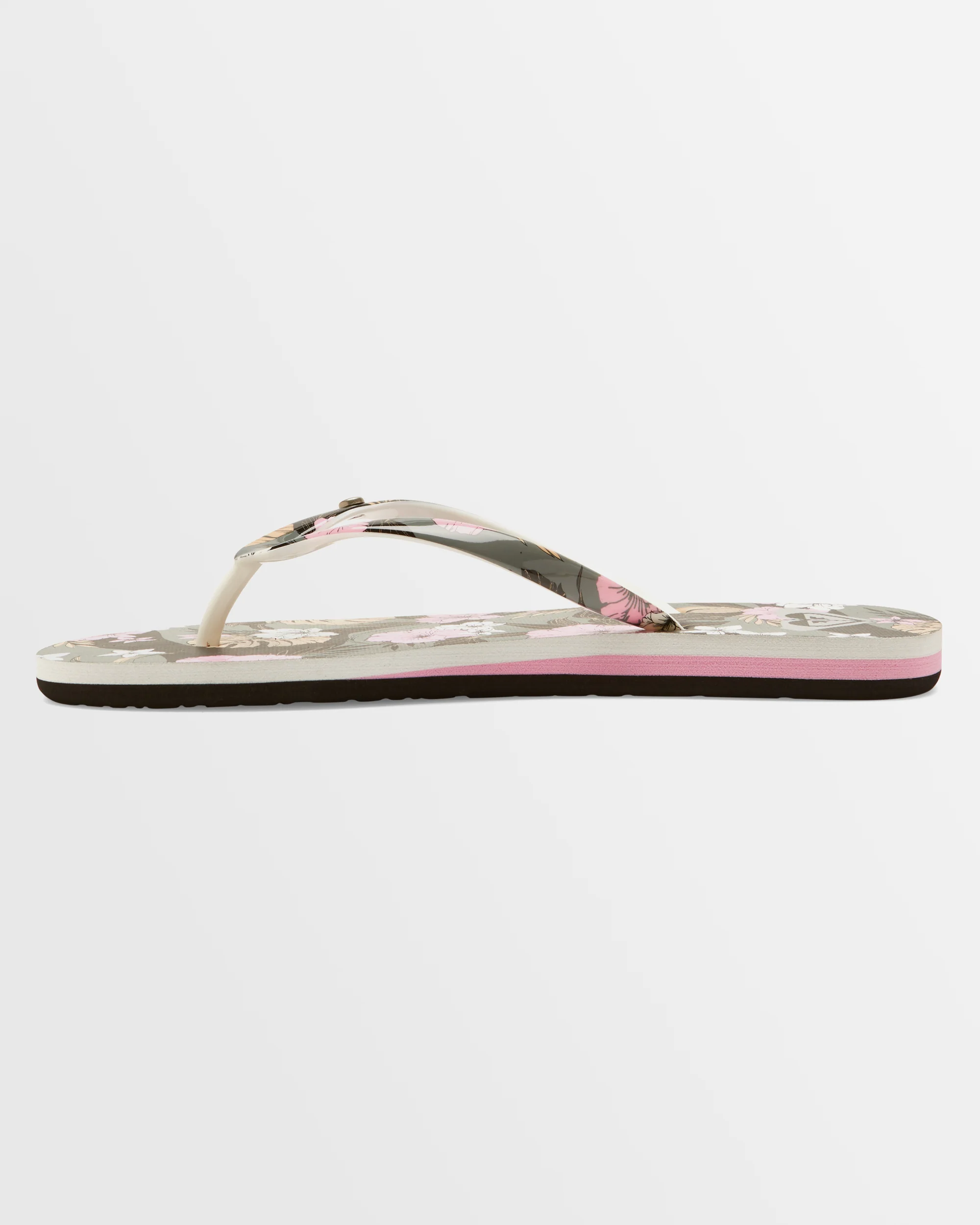 Slip into paradise mode with the Portofino flip-flops for women. Made entirely with PVC-free recycled materials, the thong sandals feature a flexible rubber footbed printed with an environmentally-friendly ink graphic and soft upper straps topped with a ROXY metal pin.